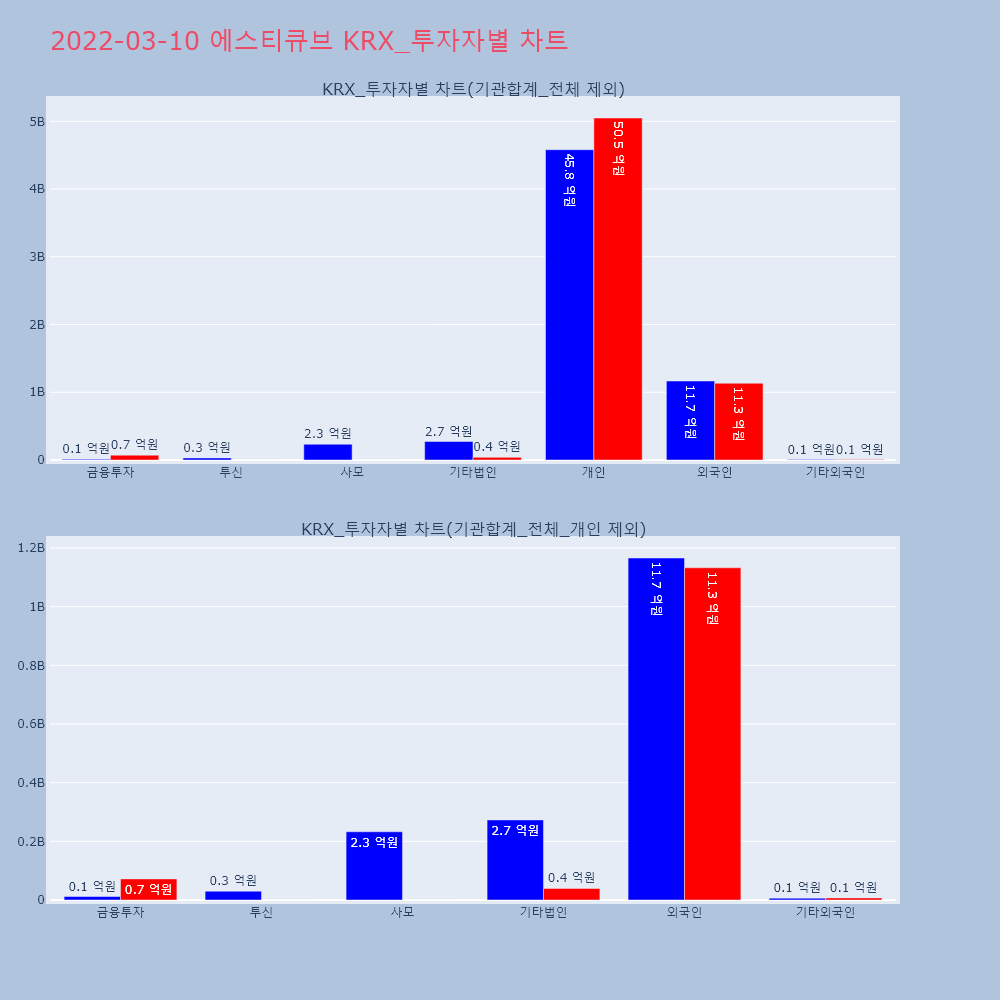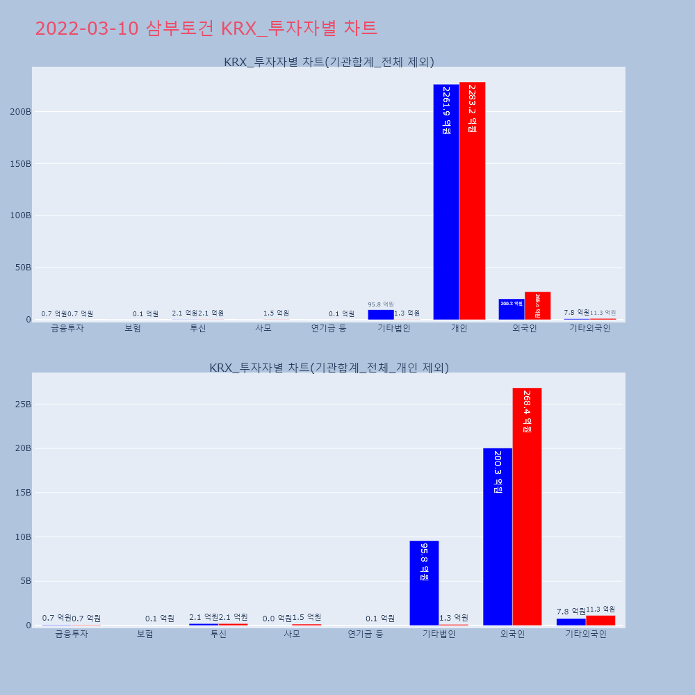 | 투자기관 | 거래량_매도 | 거래량_매수 | 거래량_순매수 | 거래대금_매도 | 거래대금_매수 | 거래대금_순매수 |