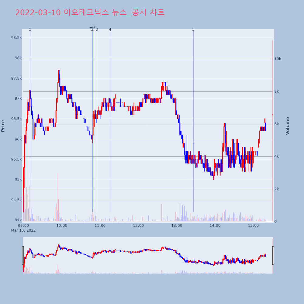 | 5 | [특징주] 이오테크닉스, 100억원 규모 자사주 취득 신탁계약… 3%↑ 제목 : [특징주] 이오테크닉스, 100억원 규모 자사 | 인포스탁 | 이오테크닉스 | 2022-03-10 13:26:14 |