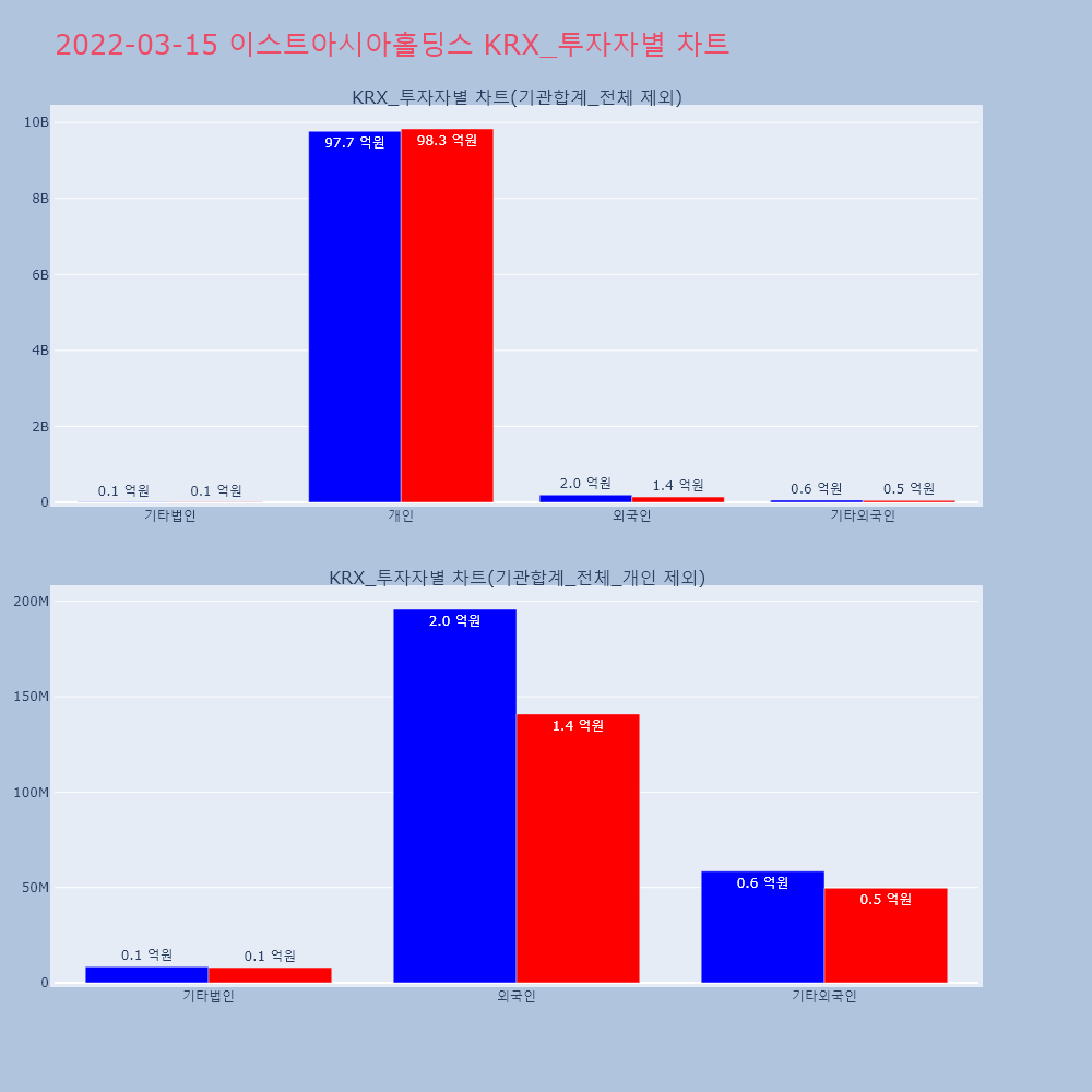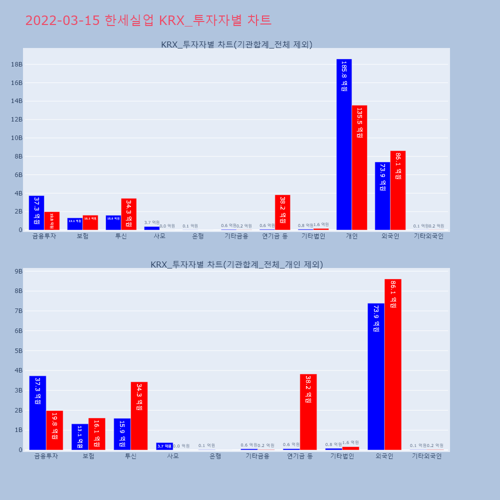 | 투자기관 | 거래량_매도 | 거래량_매수 | 거래량_순매수 | 거래대금_매도 | 거래대금_매수 | 거래대금_순매수 |