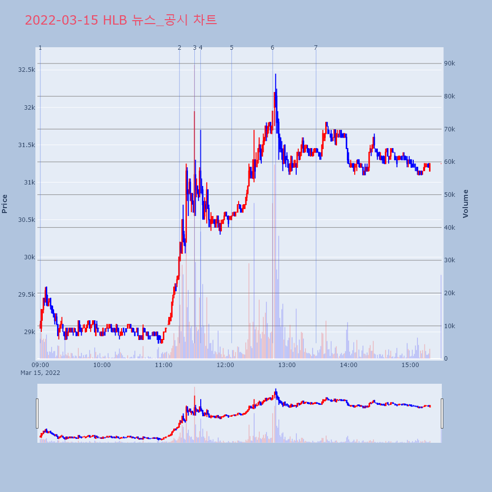 | 7 | [특징주]HLB, 불공정거래 '혐의없음' 처분에 8%대 강세▶ 하이스탁론, 선취수수료 없는 월 0.2%대 최저금리 | 이데일리 | HLB | 2022-03-15 13:28:21 |