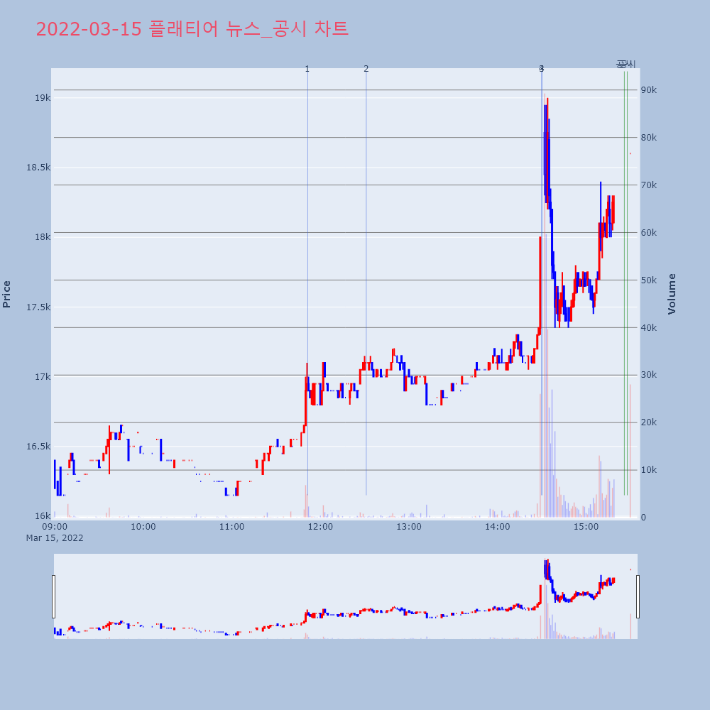 | 3 | 플래티어, +10.43% VI 발동플래티어(367000)가 VI가 발동했다. 전일 대비 | 조선경제 | 플래티어 | 2022-03-15 14:29:59 |