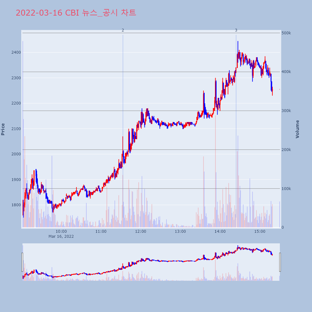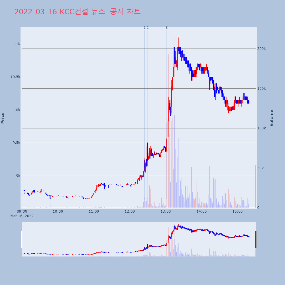 | 3 | KCC건설, +10.01% VI 발동KCC건설(021320)이 VI가 발동했다. 전일 대비 | 조선경제 | KCC건설 | 2022-03-16 13:01:50 |
