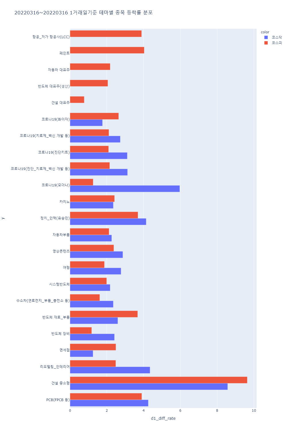 ▷국제유가 급락 및 코로나19 엔데믹 기대감 등에 항공/저가 항공사, 여행, 면세점, 카지노 등 리오프닝 관련 테마 상승.