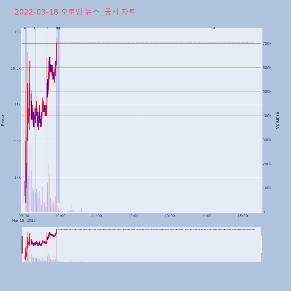 | 3 | 오토앤, 0.00% VI 발동오토앤(353590)이 VI가 발동했다. 현재 14,5 | 조선경제 | 오토앤 | 2022-03-18 09:00:05 |