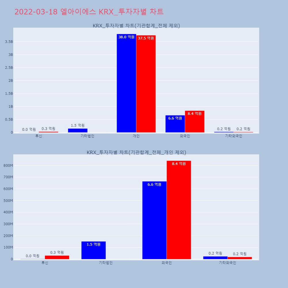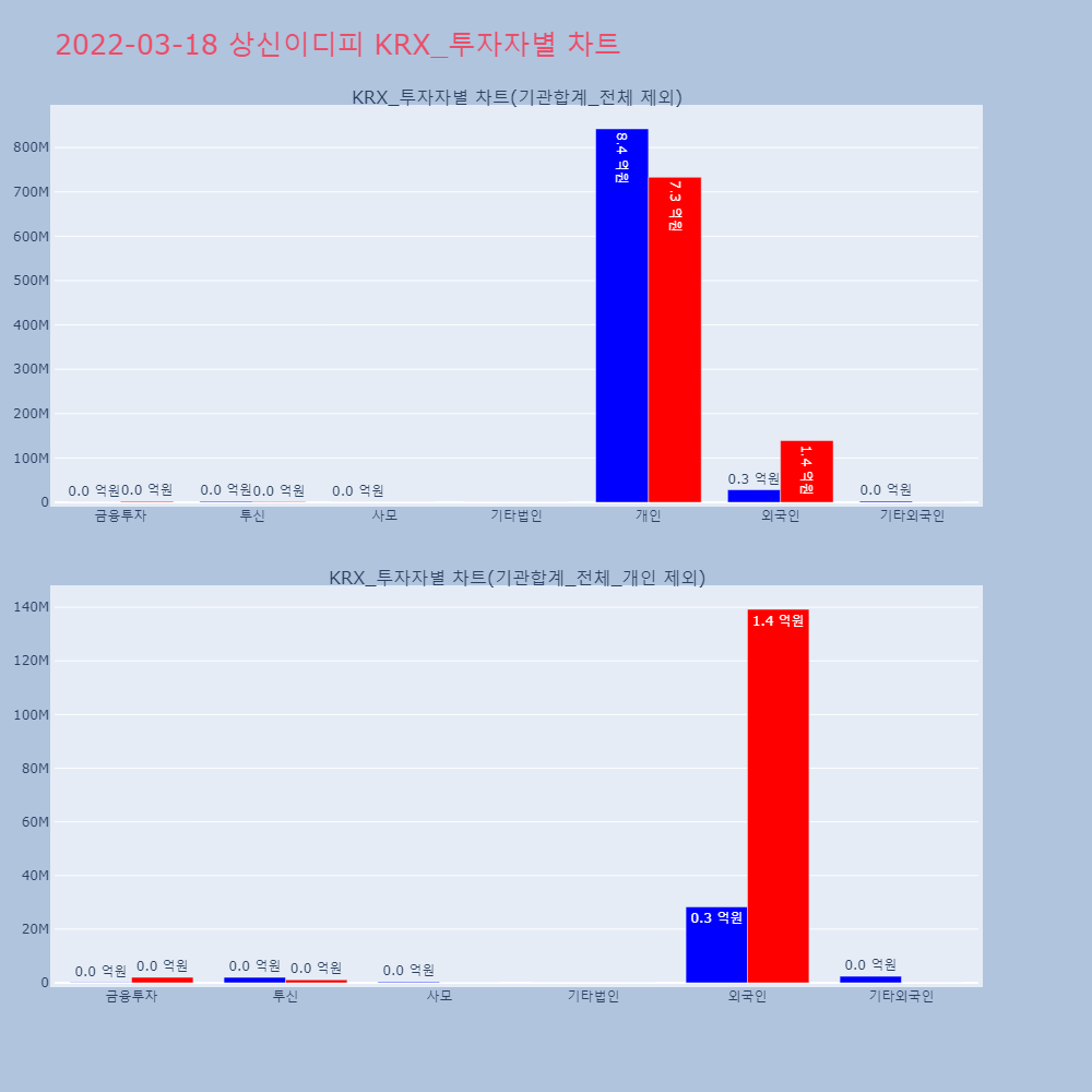 | 외국인 | 1,313 | 682 | -631 | 31,184,900 | 16,125,300 | -15,059,600 |