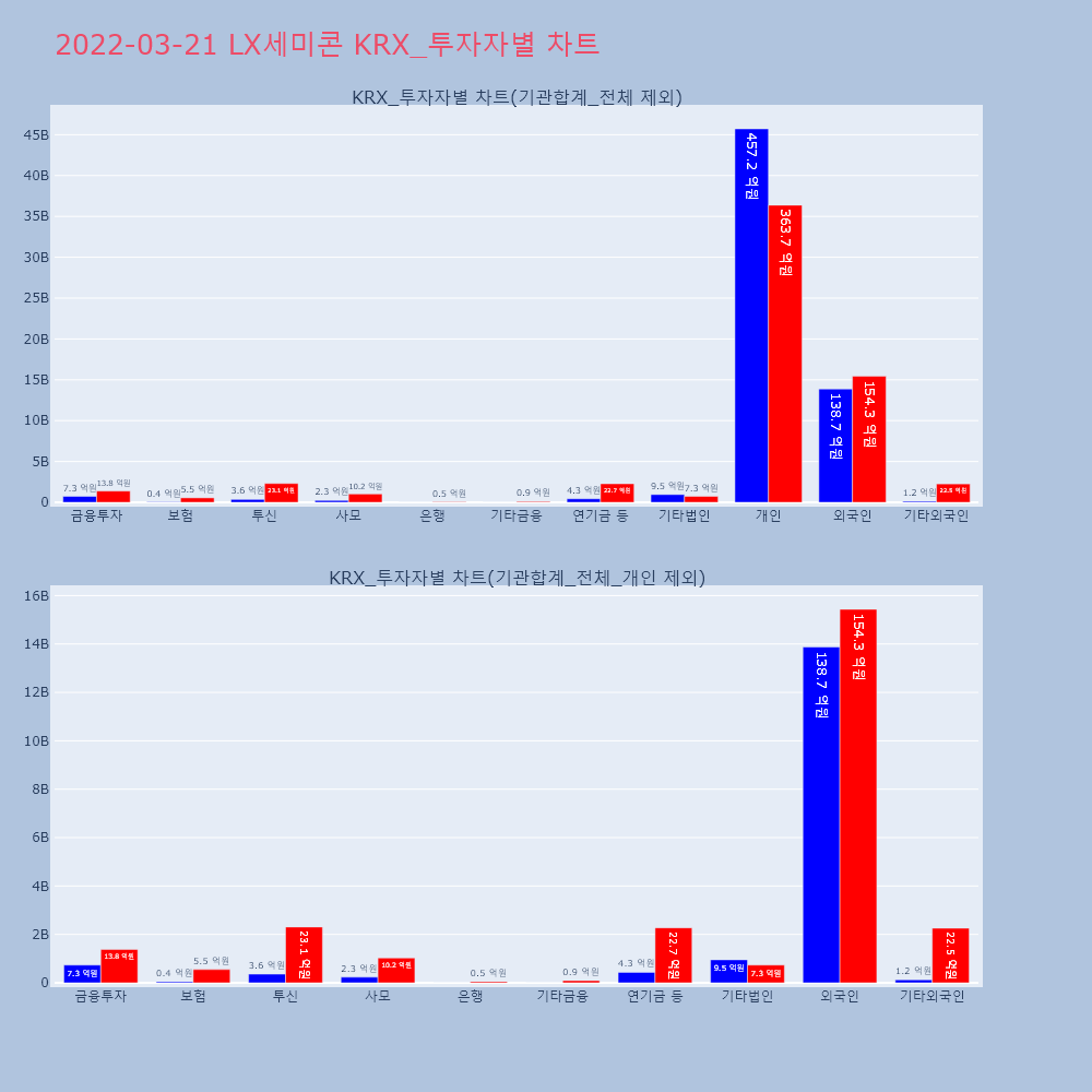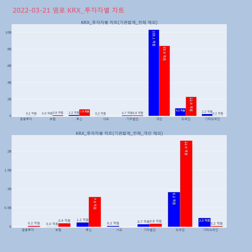 | 투자기관 | 거래량_매도 | 거래량_매수 | 거래량_순매수 | 거래대금_매도 | 거래대금_매수 | 거래대금_순매수 |