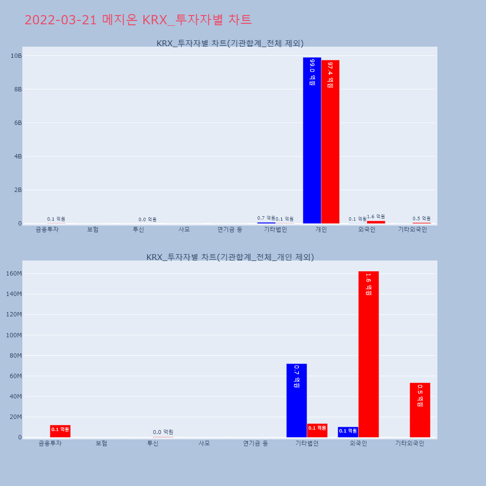 | 투자기관 | 거래량_매도 | 거래량_매수 | 거래량_순매수 | 거래대금_매도 | 거래대금_매수 | 거래대금_순매수 |