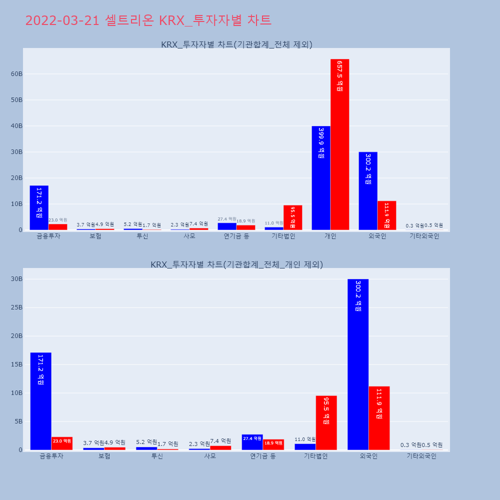 | 투자기관 | 거래량_매도 | 거래량_매수 | 거래량_순매수 | 거래대금_매도 | 거래대금_매수 | 거래대금_순매수 |