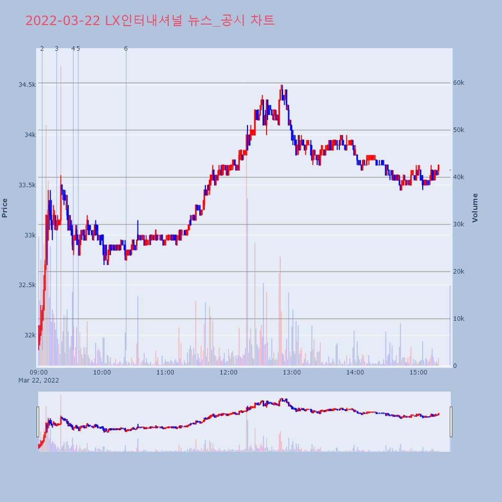 | 5 | [특징주] LX인터내셔널, 1분기 영업익 컨센서스 상회 전망에 강세 제목 : [특징주] LX인터내셔널, 1분기 영업익 컨센 | 인포스탁 | LX인터내셔널 | 2022-03-22 09:37:31 |