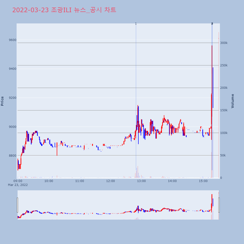 | 4 | 조광ILI, +10.14% VI 발동조광ILI(044060)가 VI가 발동했다. 전일 대비 | 조선경제 | 조광ILI | 2022-03-23 15:17:25 |