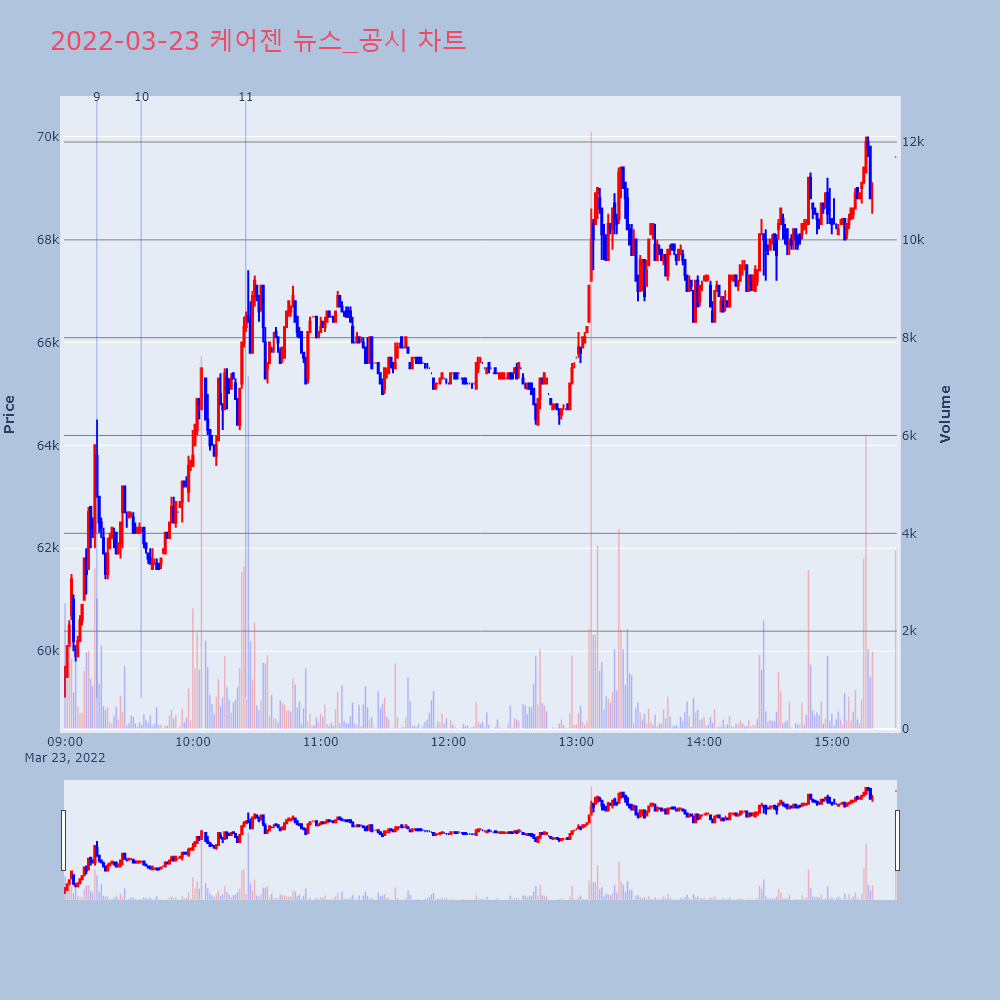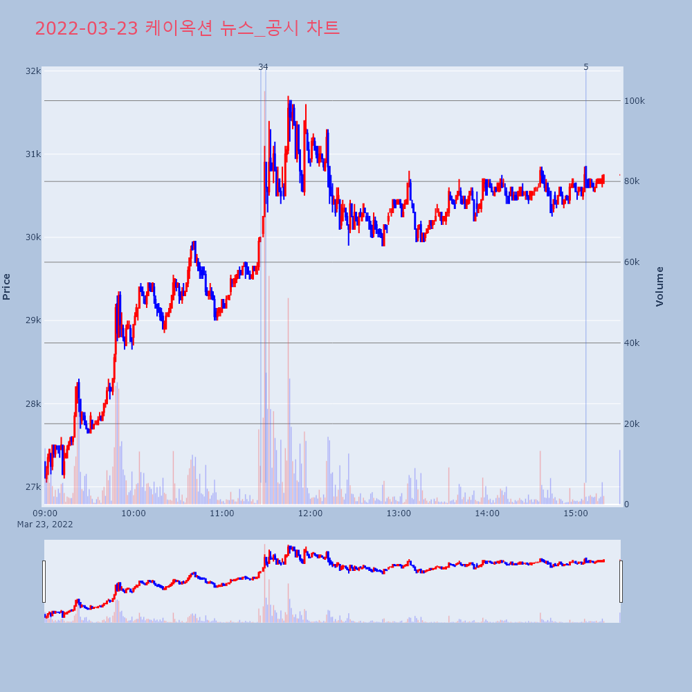 | 3 | KPX생명과학, +10.79% VI 발동KPX생명과학(114450)이 VI가 발동했다. 전일 | 조선경제 | KPX생명과학 | 2022-03-23 09:26:05 |