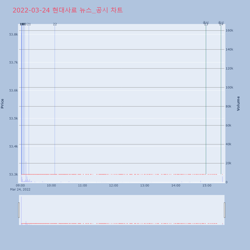 | 20 | '현대사료' 52주 신고가 경신, 단기·중기 이평선 정배열로 상승세◆ 차트 분석- 단기·중기 이평선 정배열로 상승세 | 한경/증권 | 현대사료 | 2022-03-24 09:08:32 |