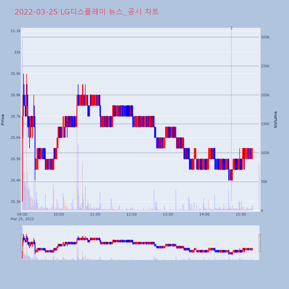 | 2 | [업종 대표주] 전기제품: LG에너지솔루션 -1.72% 출발전기제품 업종 대표주인 LG에너지솔루션(373220)이 | 조선경제 | LG에너지솔루션 | 2022-03-24 09:05:03 |