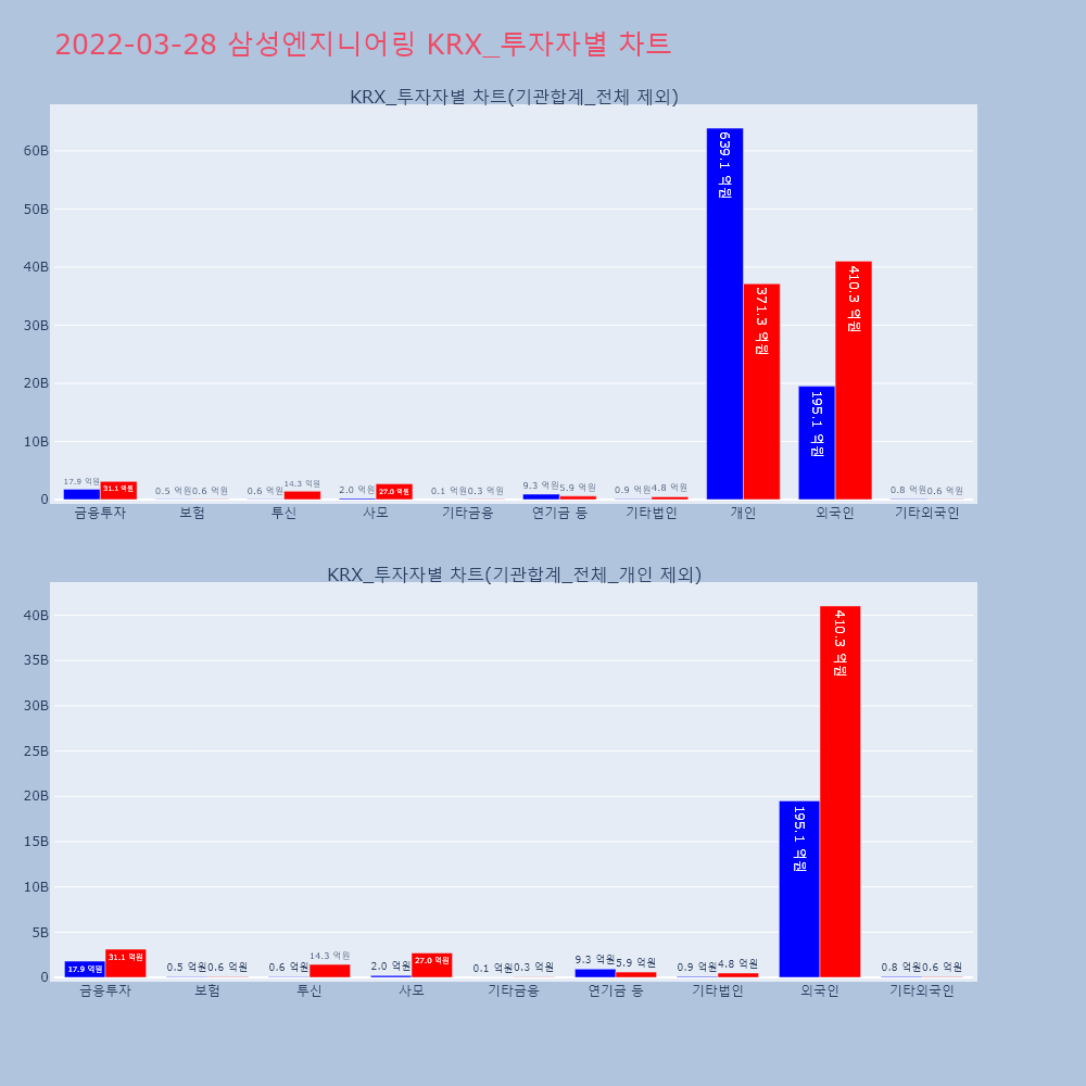 | 투자기관 | 거래량_매도 | 거래량_매수 | 거래량_순매수 | 거래대금_매도 | 거래대금_매수 | 거래대금_순매수 |