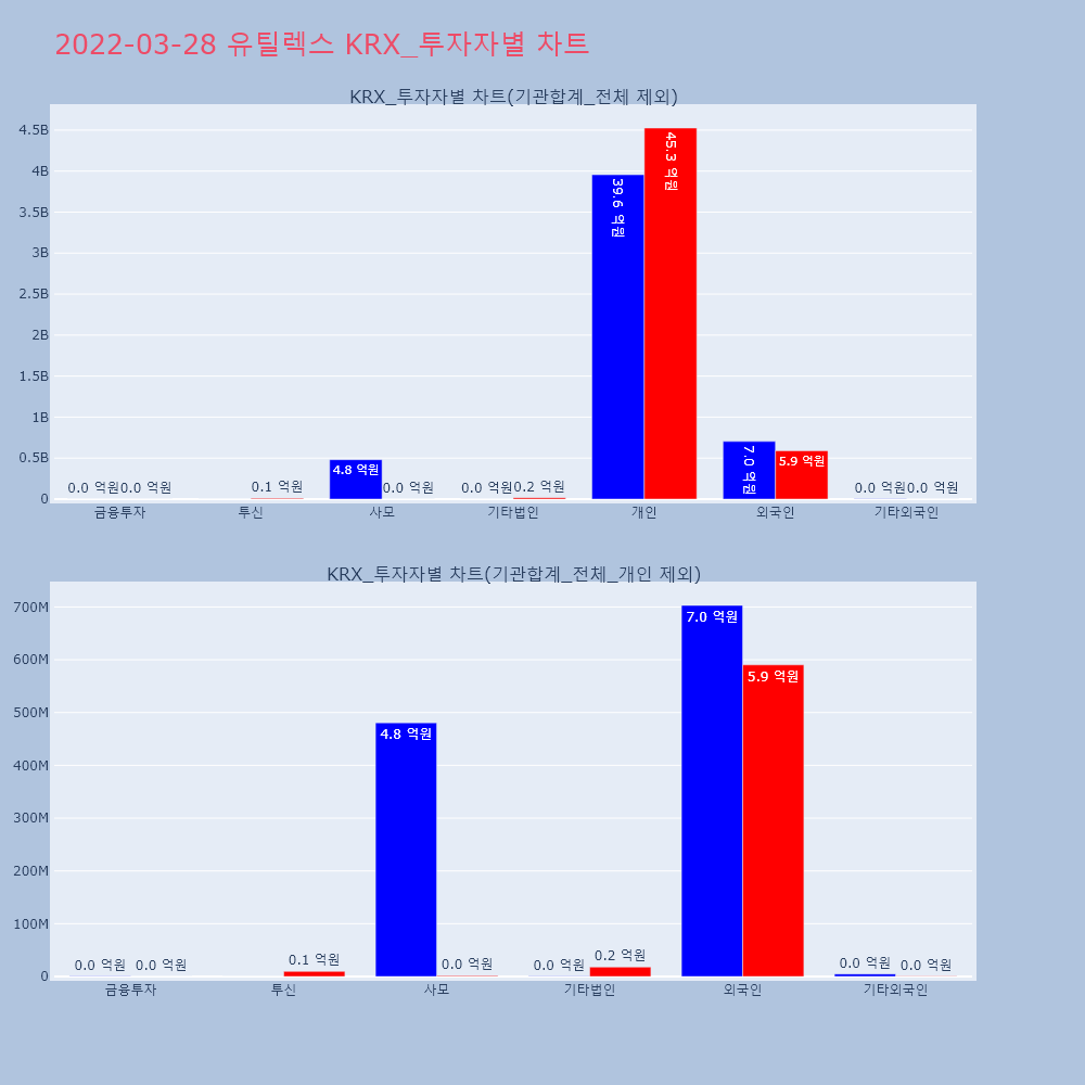 | 투자기관 | 거래량_매도 | 거래량_매수 | 거래량_순매수 | 거래대금_매도 | 거래대금_매수 | 거래대금_순매수 |