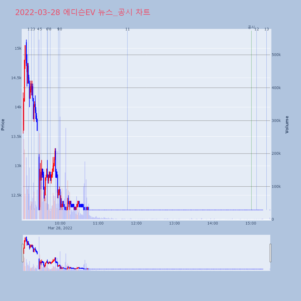 | 5 | [이시각 하한가] 에디슨EV(▼5200) - 28일 오전 9시27분[이투데이/e2BOT 기자(e2bot@etoday.co | 이투데이 | 에디슨EV | 2022-03-28 09:30:04 |