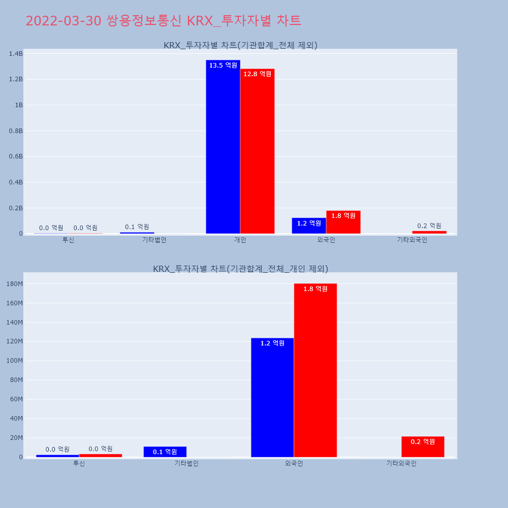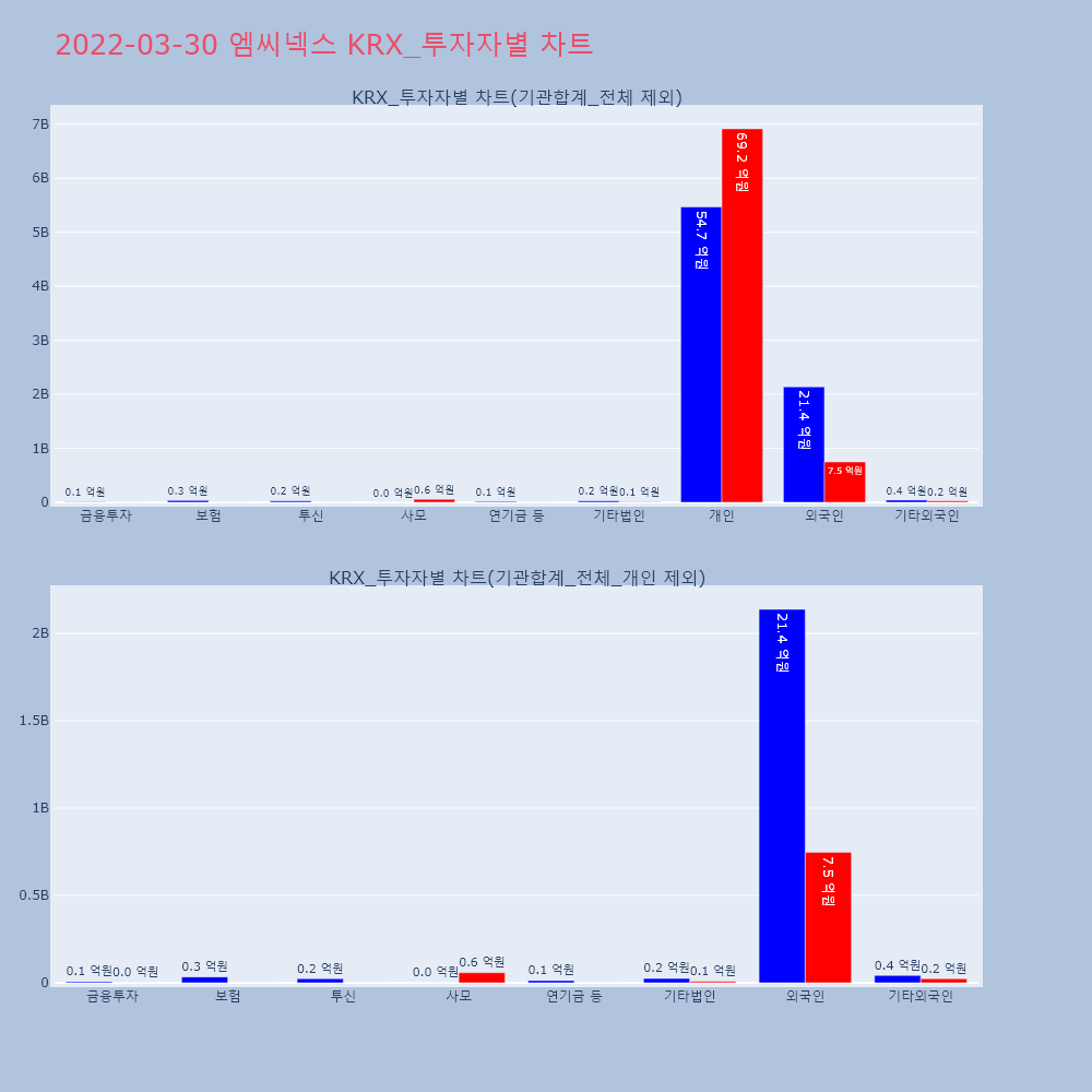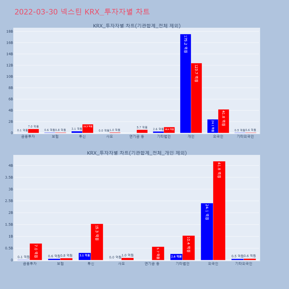 | 개인 | 73,879 | 68,835 | -5,044 | 6,249,157,500 | 5,822,637,000 | -426,520,500 |