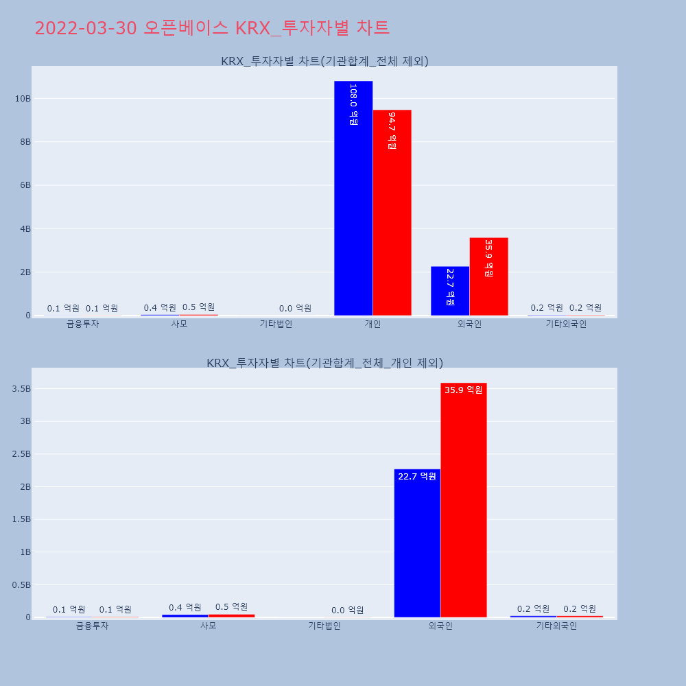 | 개인 | 86,692 | 65,188 | -21,504 | 7,779,795,500 | 5,842,326,400 | -1,937,469,100 |