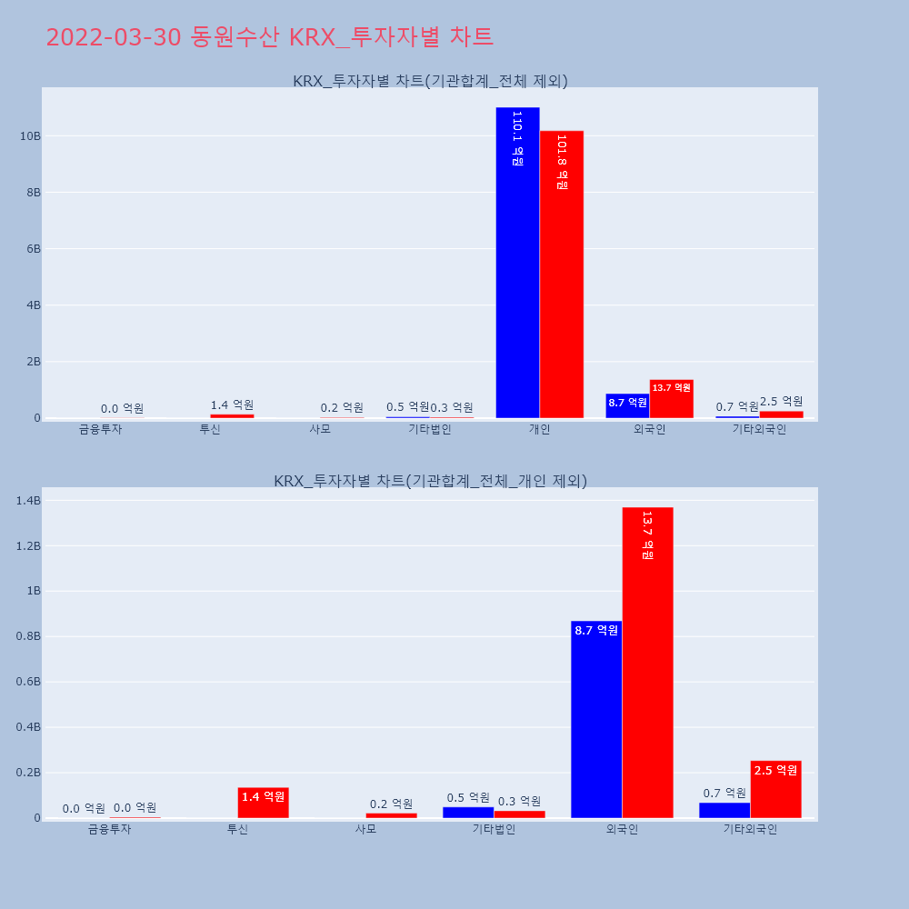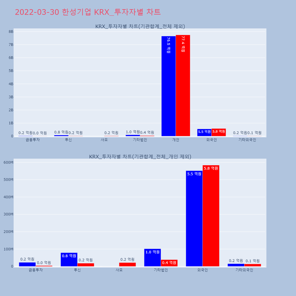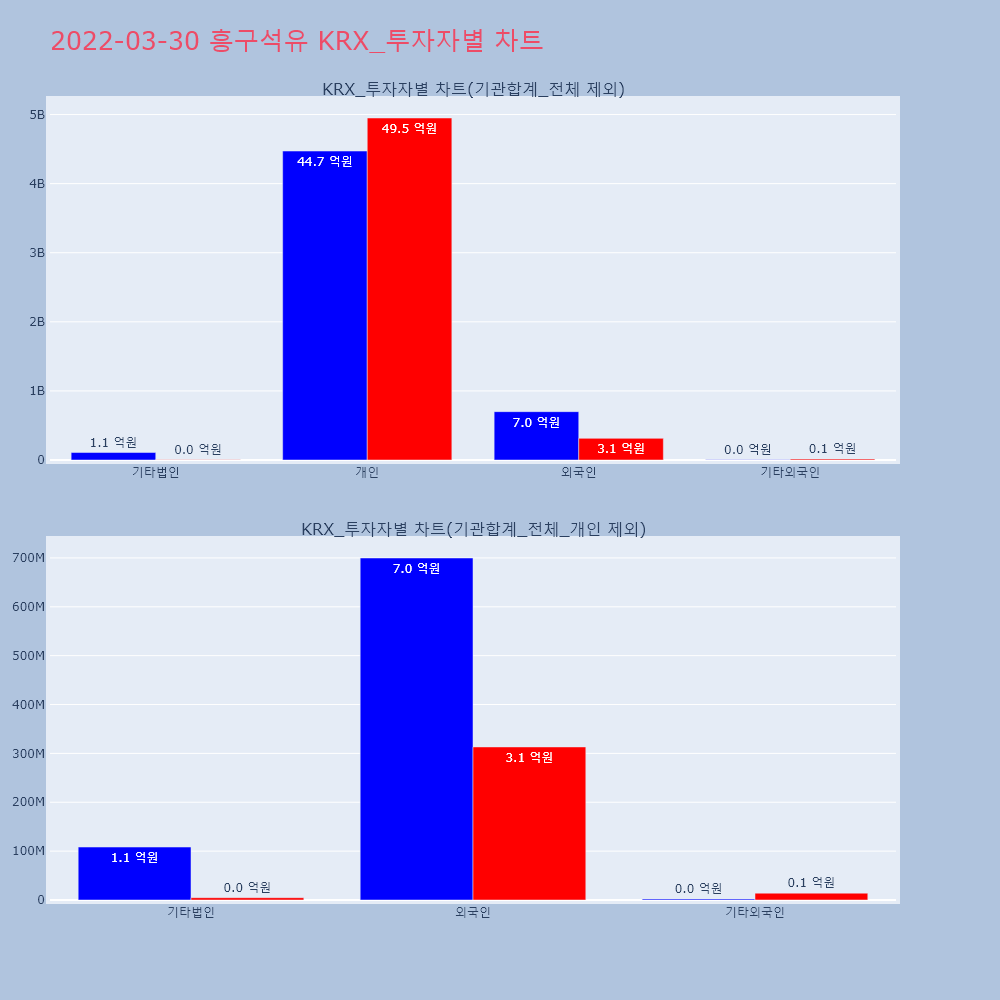 | 투자기관 | 거래량_매도 | 거래량_매수 | 거래량_순매수 | 거래대금_매도 | 거래대금_매수 | 거래대금_순매수 |