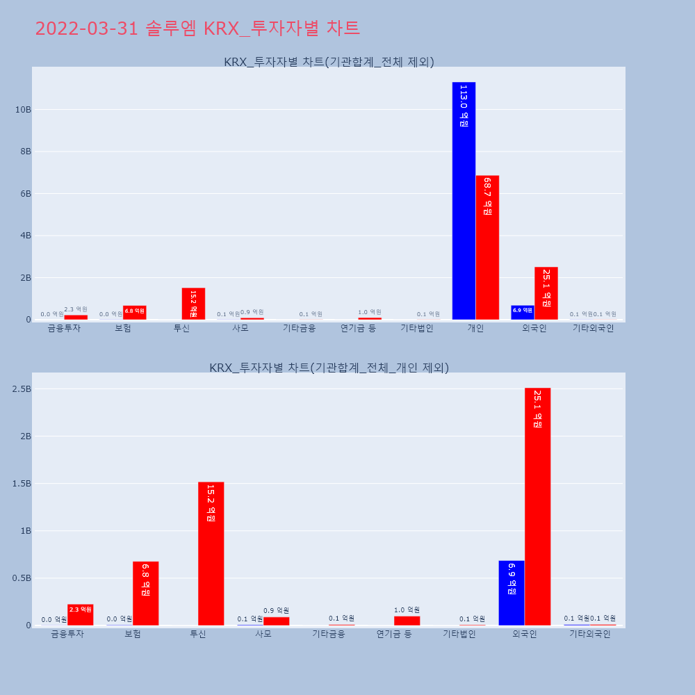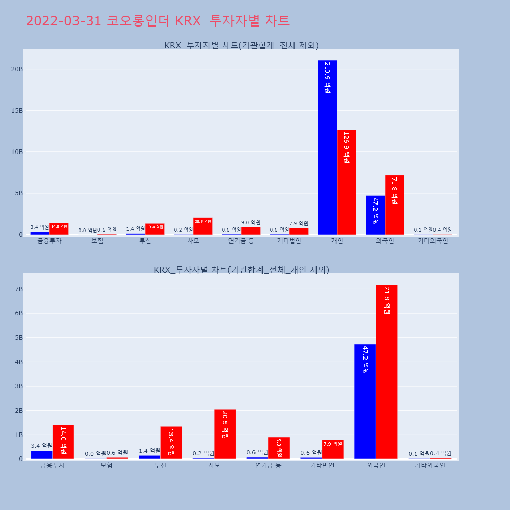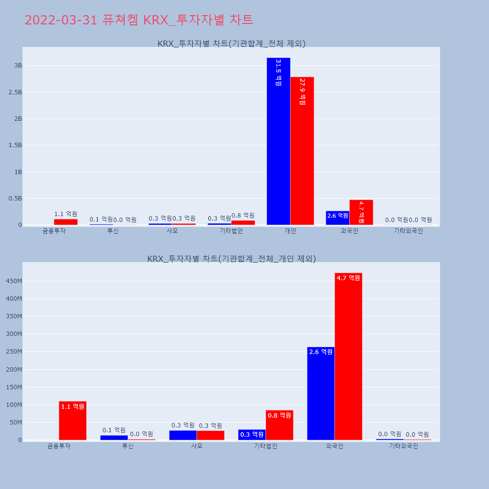 | 투자기관 | 거래량_매도 | 거래량_매수 | 거래량_순매수 | 거래대금_매도 | 거래대금_매수 | 거래대금_순매수 |