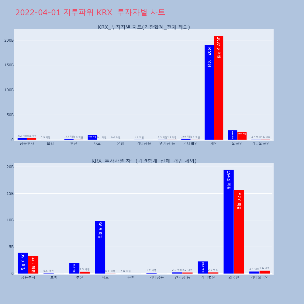 | 투자기관 | 거래량_매도 | 거래량_매수 | 거래량_순매수 | 거래대금_매도 | 거래대금_매수 | 거래대금_순매수 |