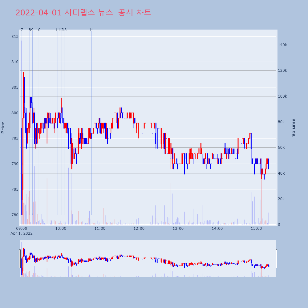 | 9 | 시티랩스, 70억 규모 국도 ITS운영관리 용역계약▶ 하이스탁론, 선취수수료 없는 월 0.2%대 최저금리 | 이데일리 | 시티랩스 | 2022-04-01 09:16:34 |