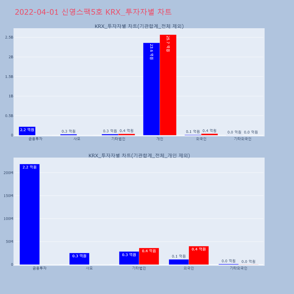 | 투자기관 | 거래량_매도 | 거래량_매수 | 거래량_순매수 | 거래대금_매도 | 거래대금_매수 | 거래대금_순매수 |