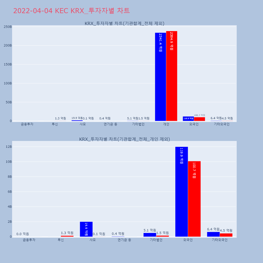 | 투자기관 | 거래량_매도 | 거래량_매수 | 거래량_순매수 | 거래대금_매도 | 거래대금_매수 | 거래대금_순매수 |