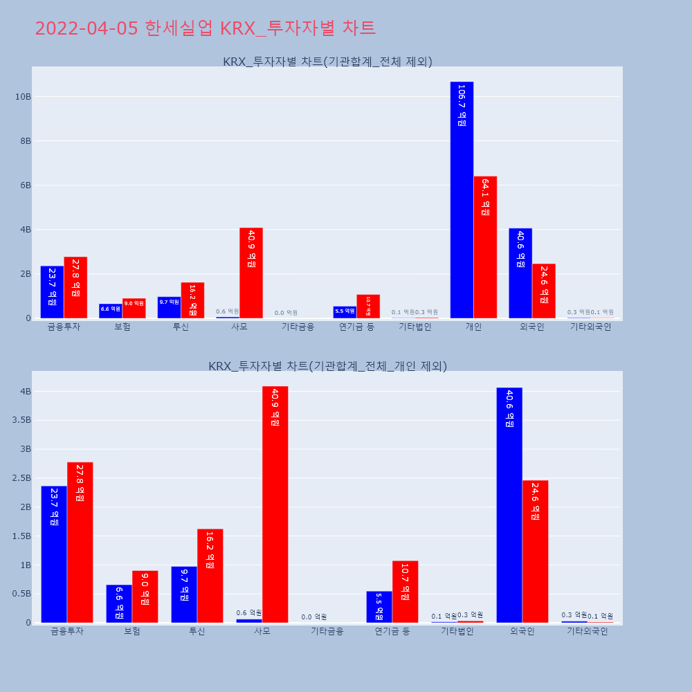 | 투자기관 | 거래량_매도 | 거래량_매수 | 거래량_순매수 | 거래대금_매도 | 거래대금_매수 | 거래대금_순매수 |