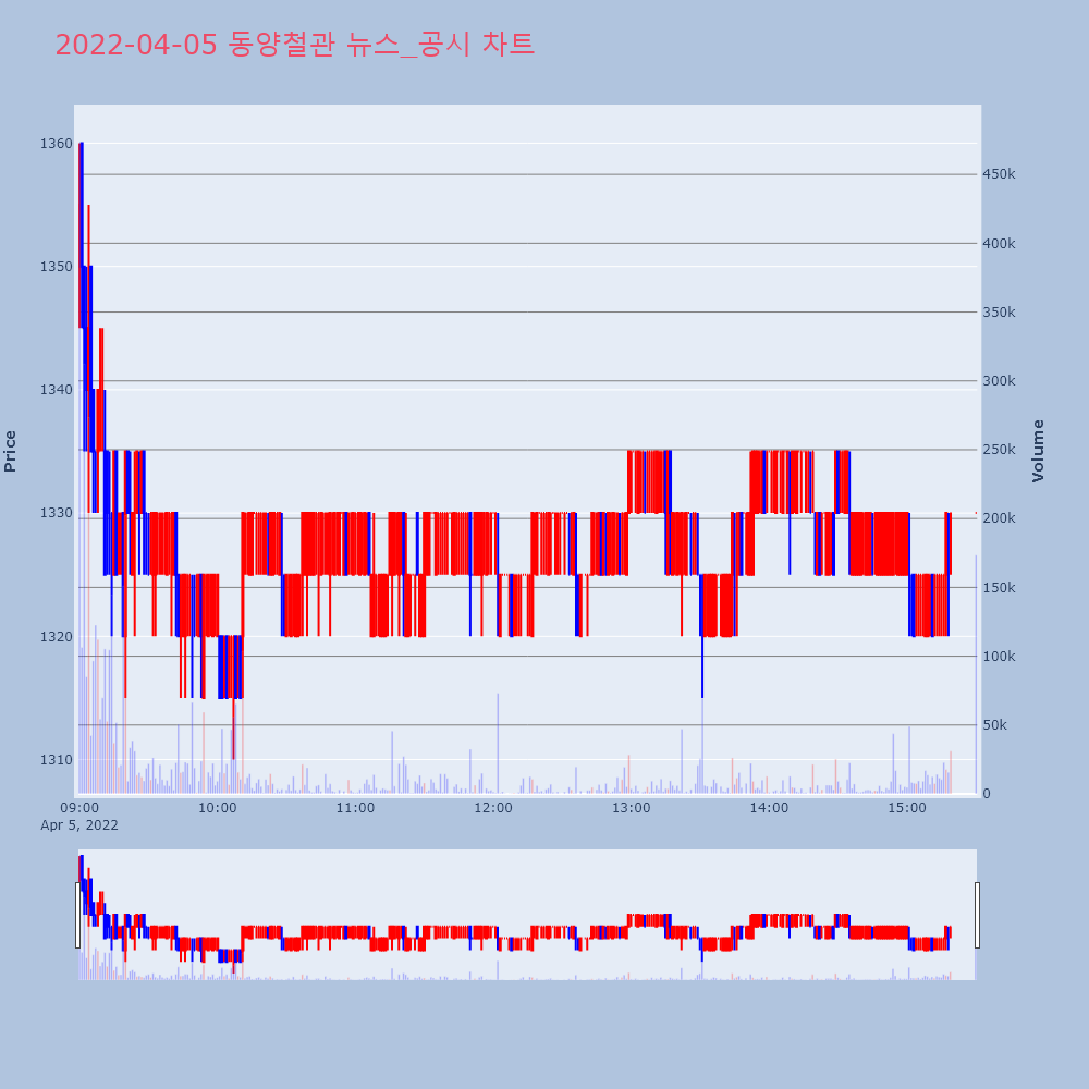 | 3 | 동양철관, +10.37% VI 발동동양철관(008970)이 VI가 발동했다. 전일 대비 | 조선경제 | 동양철관 | 2022-04-04 13:09:34 |