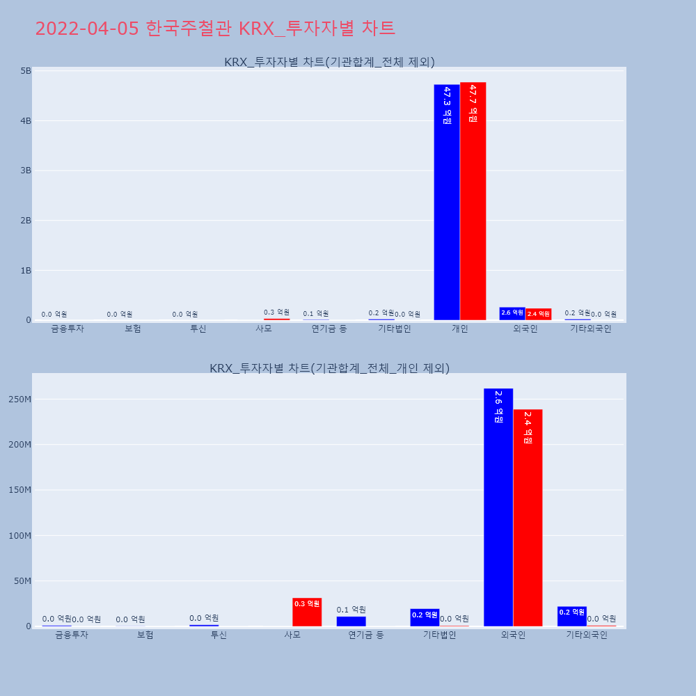 | 투자기관 | 거래량_매도 | 거래량_매수 | 거래량_순매수 | 거래대금_매도 | 거래대금_매수 | 거래대금_순매수 |