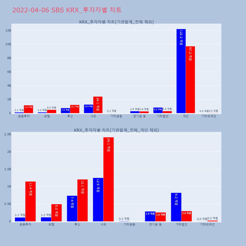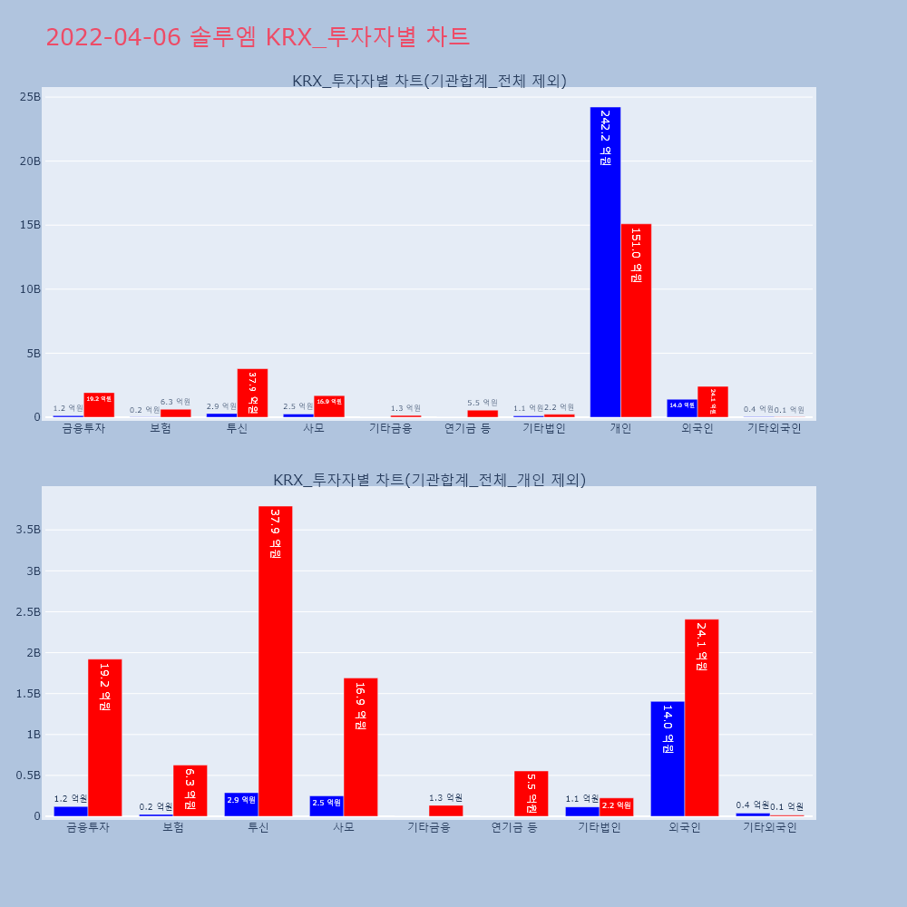 | 투자기관 | 거래량_매도 | 거래량_매수 | 거래량_순매수 | 거래대금_매도 | 거래대금_매수 | 거래대금_순매수 |