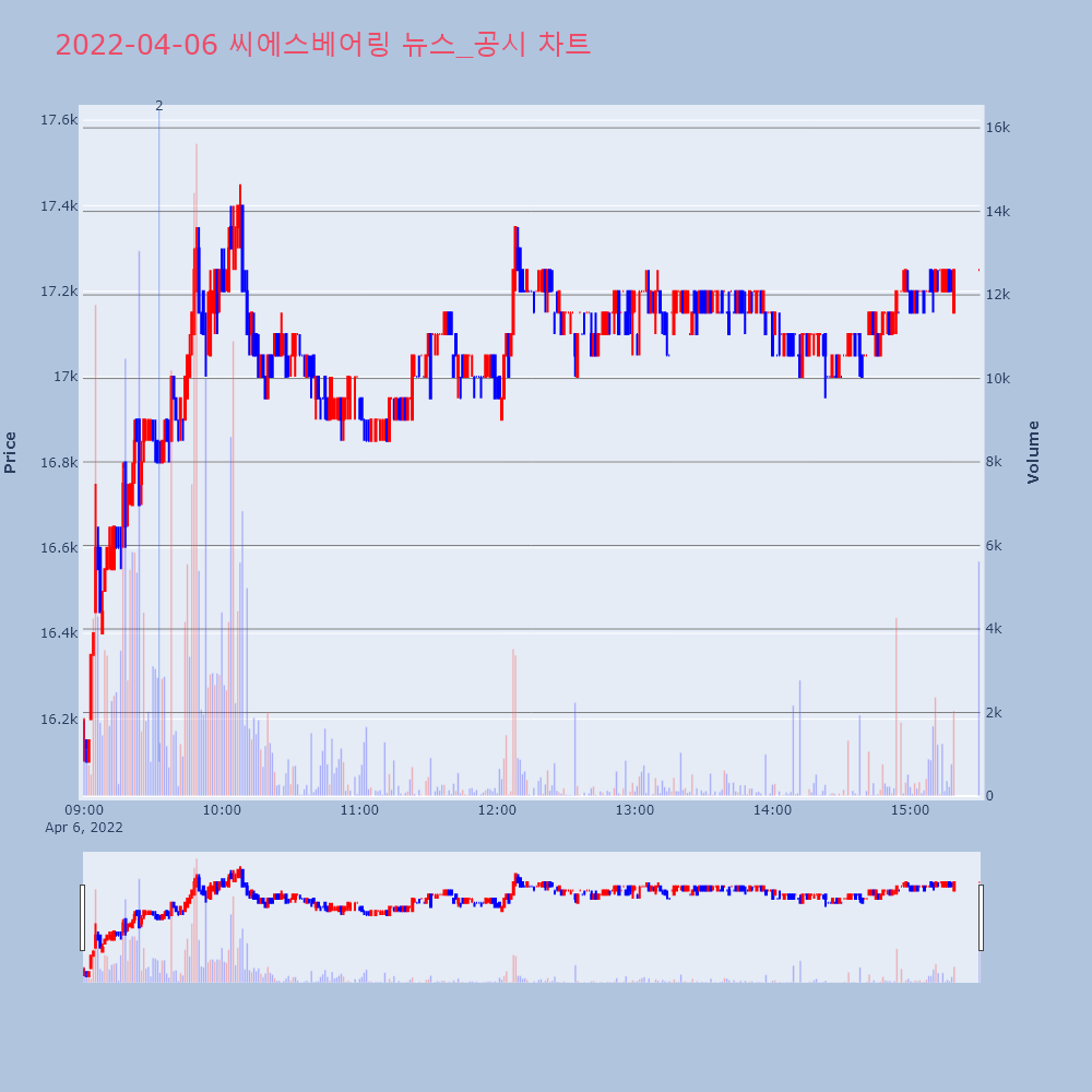 | 2022-04-05 09:29:00 | 20220405900126 | 조회공시요구(풍문또는보도) ((주)스튜디오산타클로스 매각 추진 보도에 관한 조회공시 요구) |