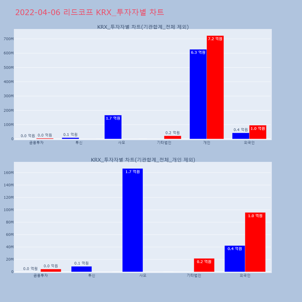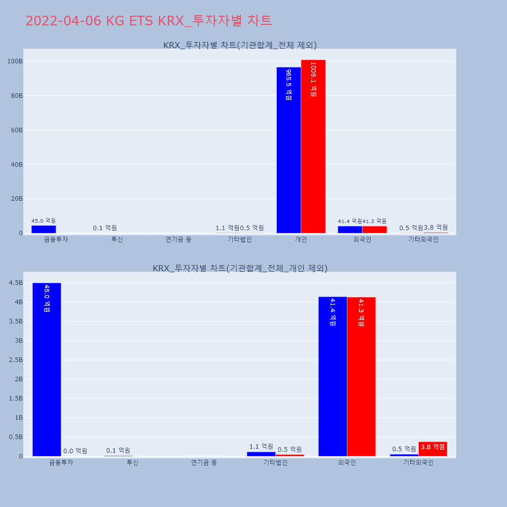 | 투자기관 | 거래량_매도 | 거래량_매수 | 거래량_순매수 | 거래대금_매도 | 거래대금_매수 | 거래대금_순매수 |