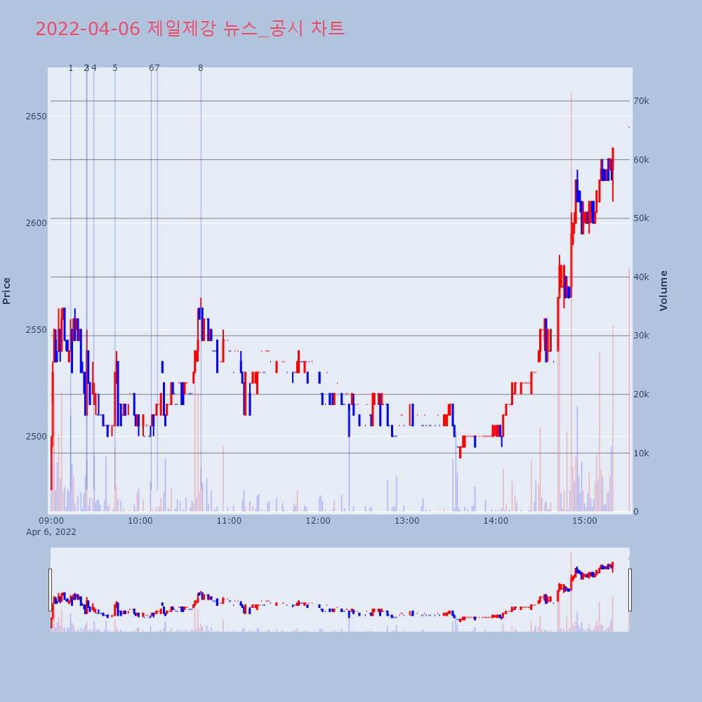 | 7 | 제일제강, 가상자산 및 게임 NFT 기업 인수 위한 ‘글로벌 자문단’ 신설 제목 : 제일제강, 가상자산 및 게임 NFT 기업 인수 | 인포스탁 | 제일제강 | 2022-04-06 10:11:37 |