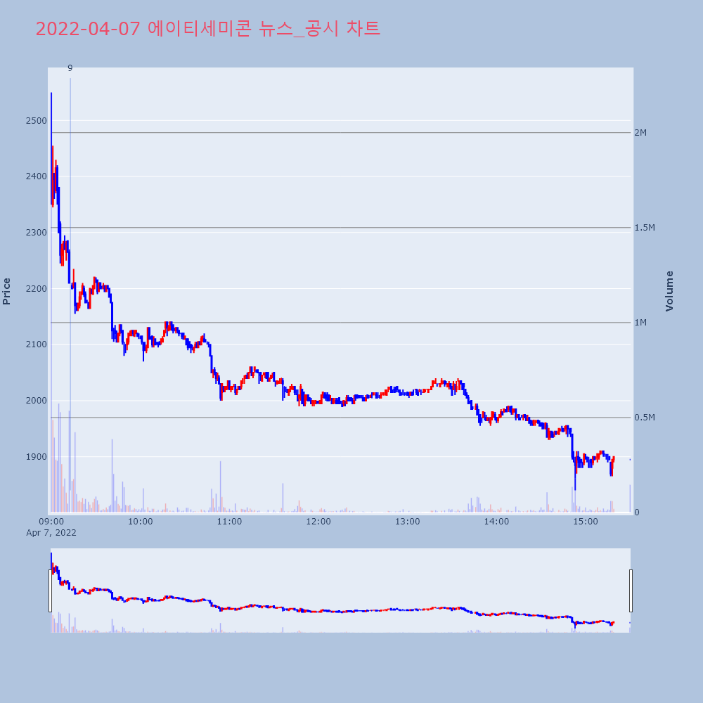 | 2 | 에이티세미콘, +15.25% VI 발동에이티세미콘(089530)이 VI가 발동했다. 전일 대 | 조선경제 | 에이티세미콘 | 2022-04-06 09:06:50 |