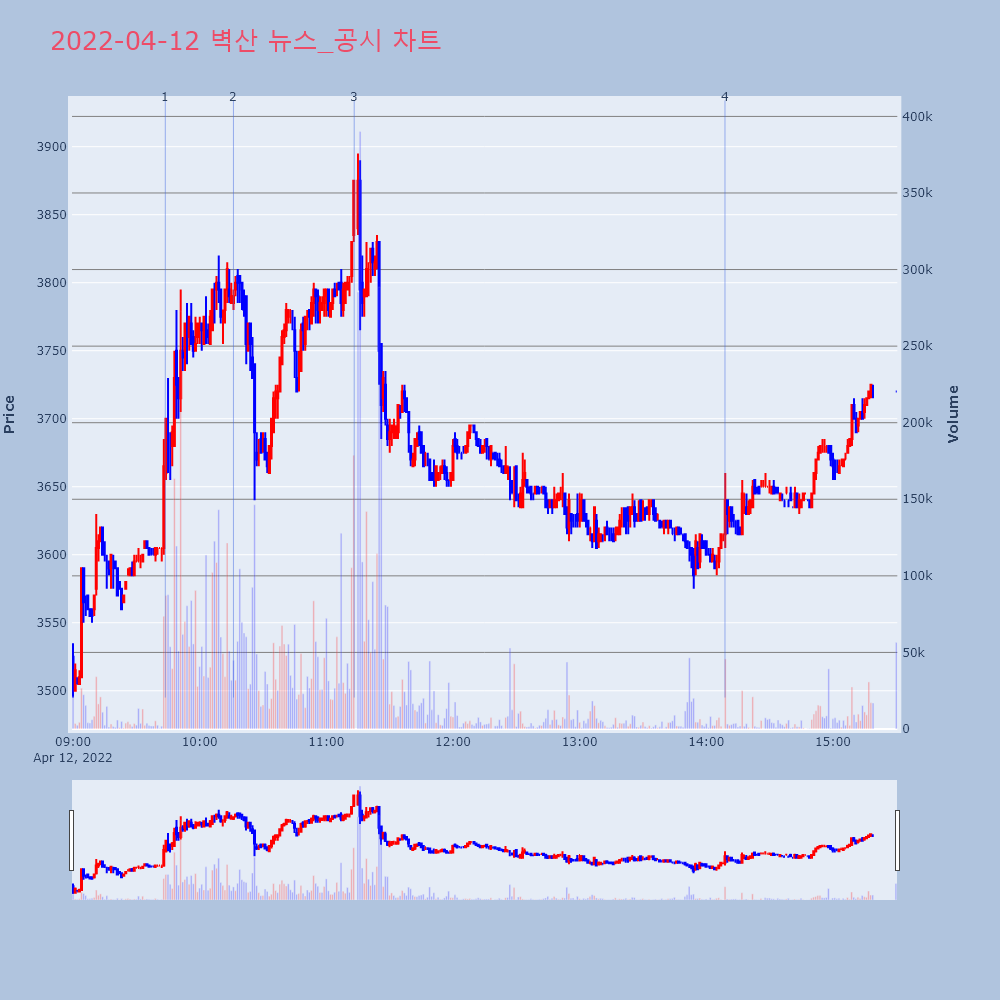 | 4 | [특징주] 벽산, 물류센터 대규모 공급 수혜주 부각에 4%↑ 제목 : [특징주] 벽산, 물류센터 대규모 공급 수혜주 | 인포스탁 | 벽산 | 2022-04-12 14:08:51 |