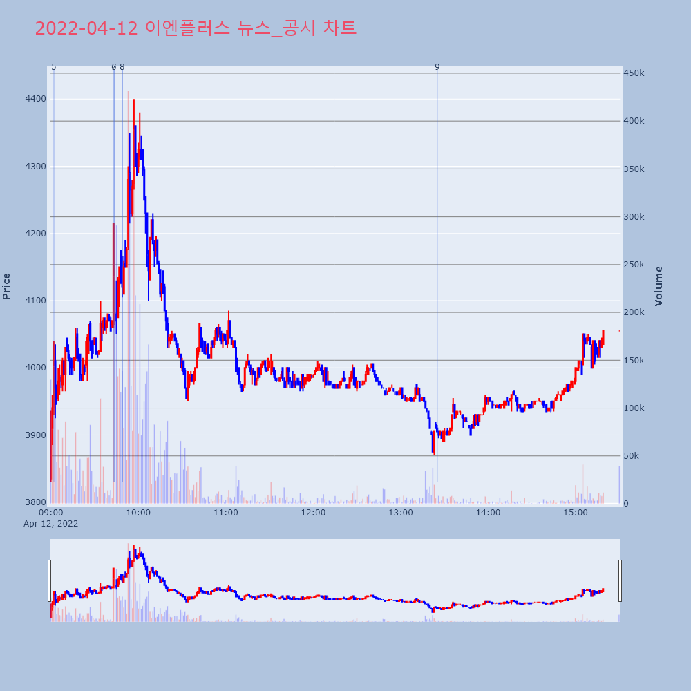 | 7 | 이엔플러스, +11.08% VI 발동이엔플러스(074610)가 VI가 발동했다. 전일 대비 | 조선경제 | 이엔플러스 | 2022-04-12 09:43:25 |