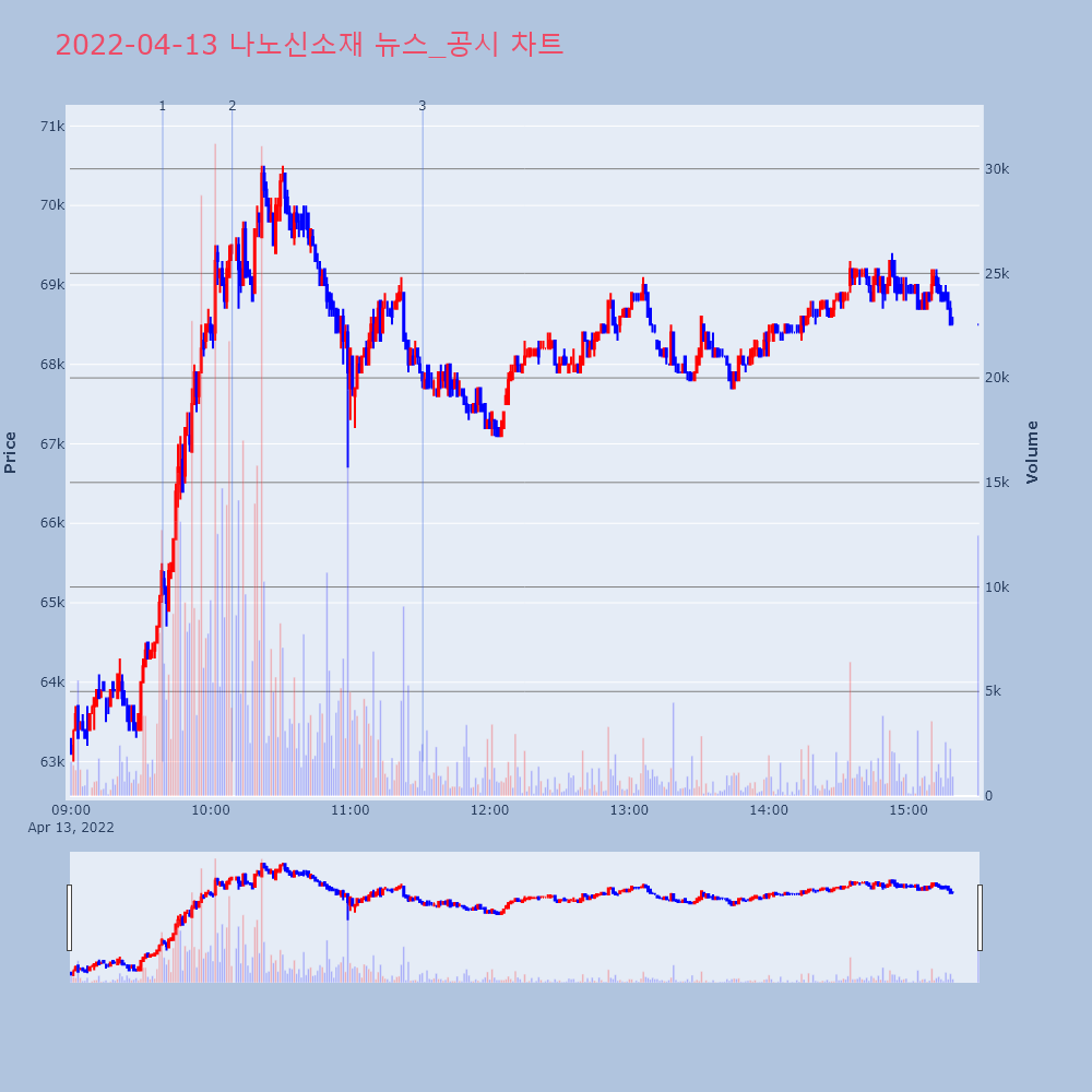 | 2 | 나노신소재, +9.62% VI 발동나노신소재(121600)가 VI가 발동했다. 전일 대비 | 조선경제 | 나노신소재 | 2022-04-13 10:09:18 |