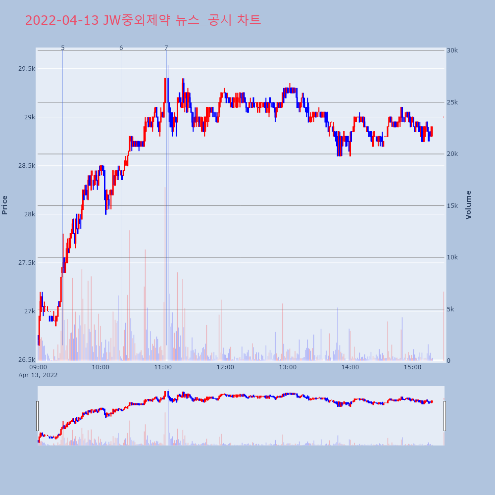 | 7 | JW중외제약, +10.32% VI 발동JW중외제약(001060)이 VI가 발동했다. 전일 대 | 조선경제 | JW중외제약 | 2022-04-13 11:03:25 |
