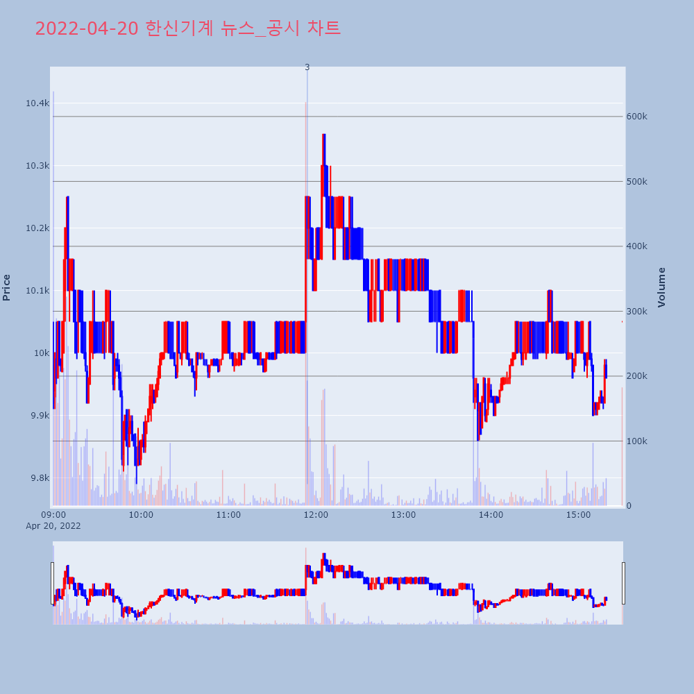 | 3 | 한일철강, +11.58% VI 발동한일철강(002220)이 VI가 발동했다. 전일 대비 | 조선경제 | 한일철강 | 2022-04-20 12:57:33 |