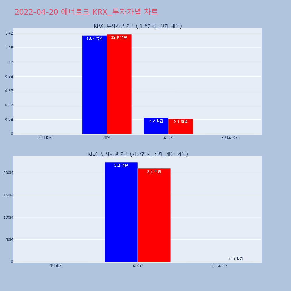 | 투자기관 | 거래량_매도 | 거래량_매수 | 거래량_순매수 | 거래대금_매도 | 거래대금_매수 | 거래대금_순매수 |