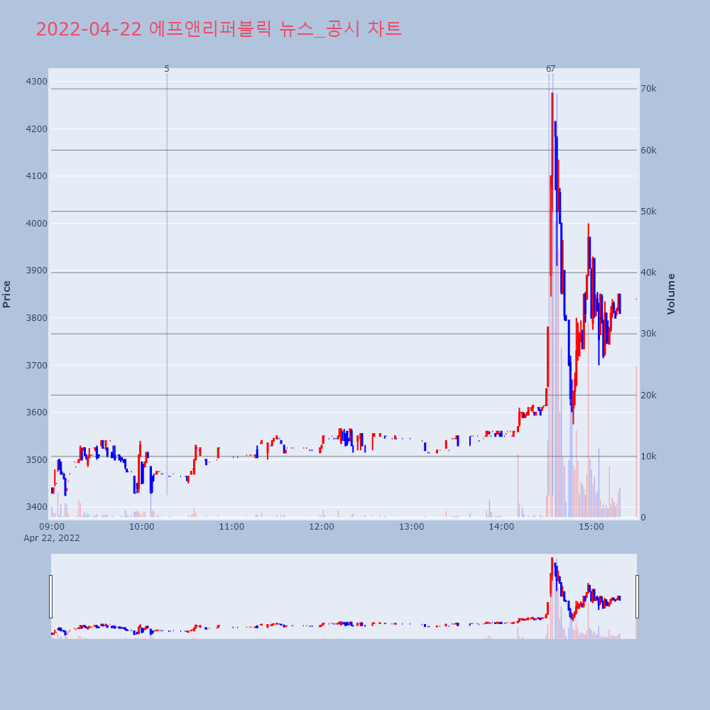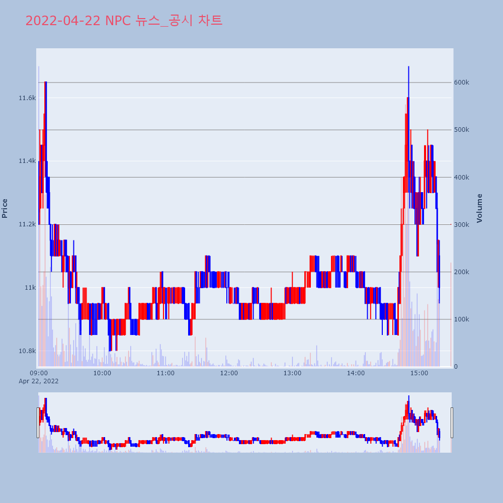 | 4 | [특징주] 케이피에프, 러시아-우크라이나 사태 이후 석탄 발전량 증가 소식제목 : [특징주] 케이피에프, 러시아-우크라이나 사태 | 인포스탁 | 케이피에프 | 2022-04-21 13:17:55 |