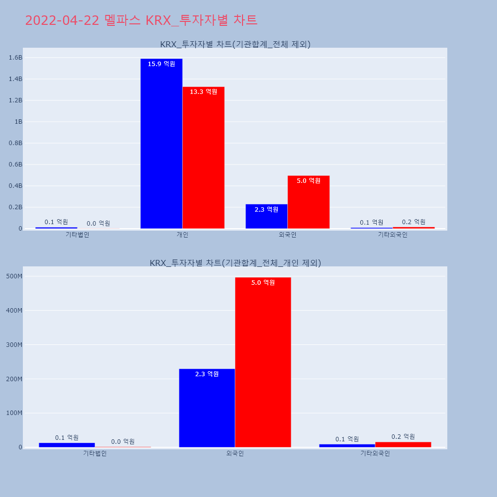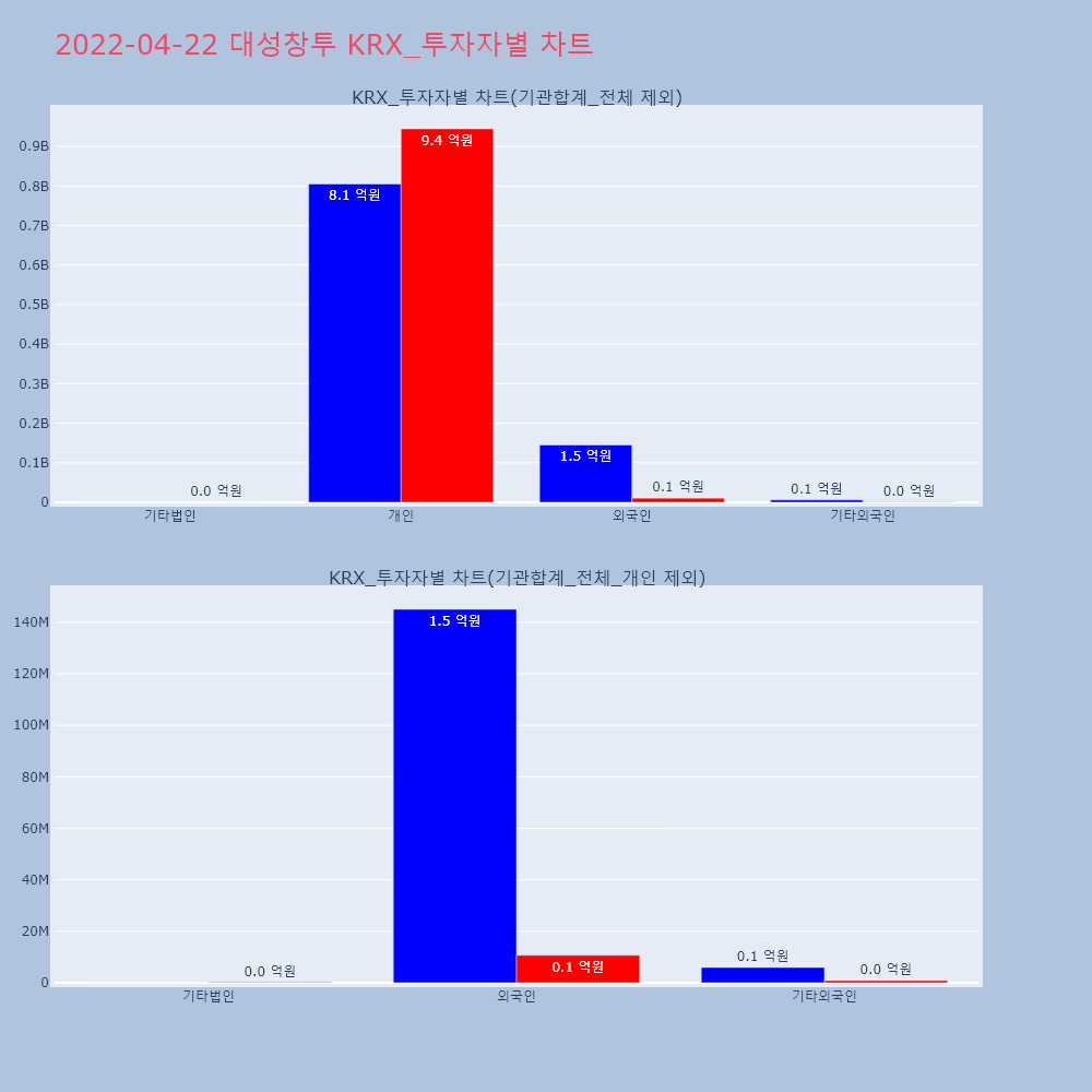 | 투자기관 | 거래량_매도 | 거래량_매수 | 거래량_순매수 | 거래대금_매도 | 거래대금_매수 | 거래대금_순매수 |