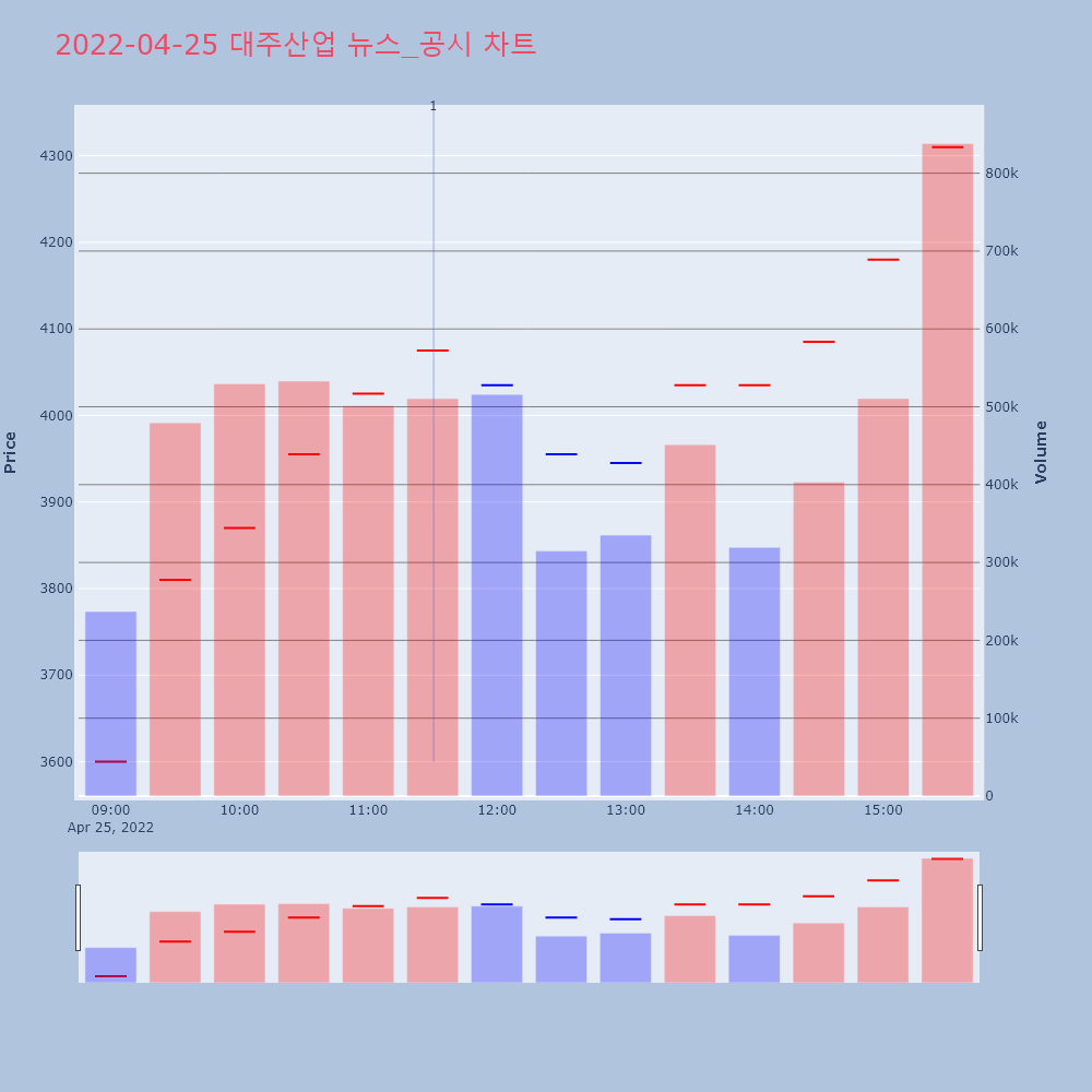 | 2 | '대주산업' 52주 신고가 경신, 단기·중기 이평선 정배열로 상승세◆ 차트 분석- 단기·중기 이평선 정배열로 상승세 | 한경/증권 | 대주산업 | 2022-04-25 15:33:13 |