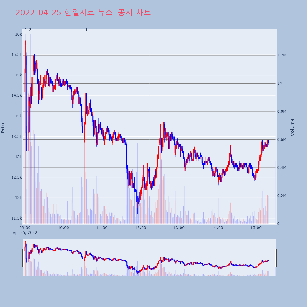 | 3 | '한일사료' 52주 신고가 경신, 단기·중기 이평선 정배열로 상승세◆ 차트 분석- 단기·중기 이평선 정배열로 상승세 | 한경/증권 | 한일사료 | 2022-04-25 09:08:31 |