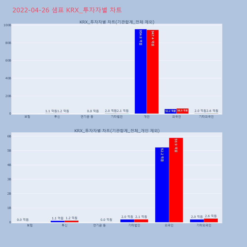 | 투자기관 | 거래량_매도 | 거래량_매수 | 거래량_순매수 | 거래대금_매도 | 거래대금_매수 | 거래대금_순매수 |
