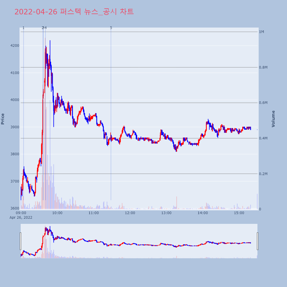 | 3 | 퍼스텍, +13.04% VI 발동퍼스텍(010820)이 VI가 발동했다. 전일 대비 1 | 조선경제 | 퍼스텍 | 2022-04-26 09:37:06 |