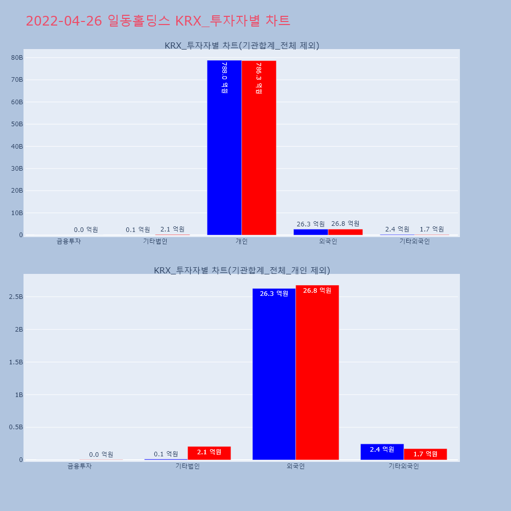 | 외국인 | 2,099 | 332 | -1,767 | 46,217,800 | 7,320,600 | -38,897,200 |