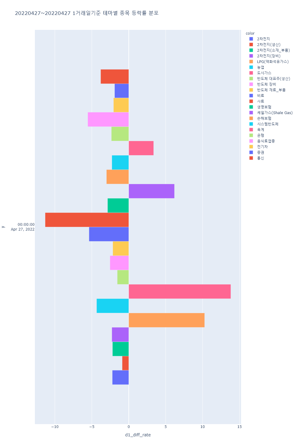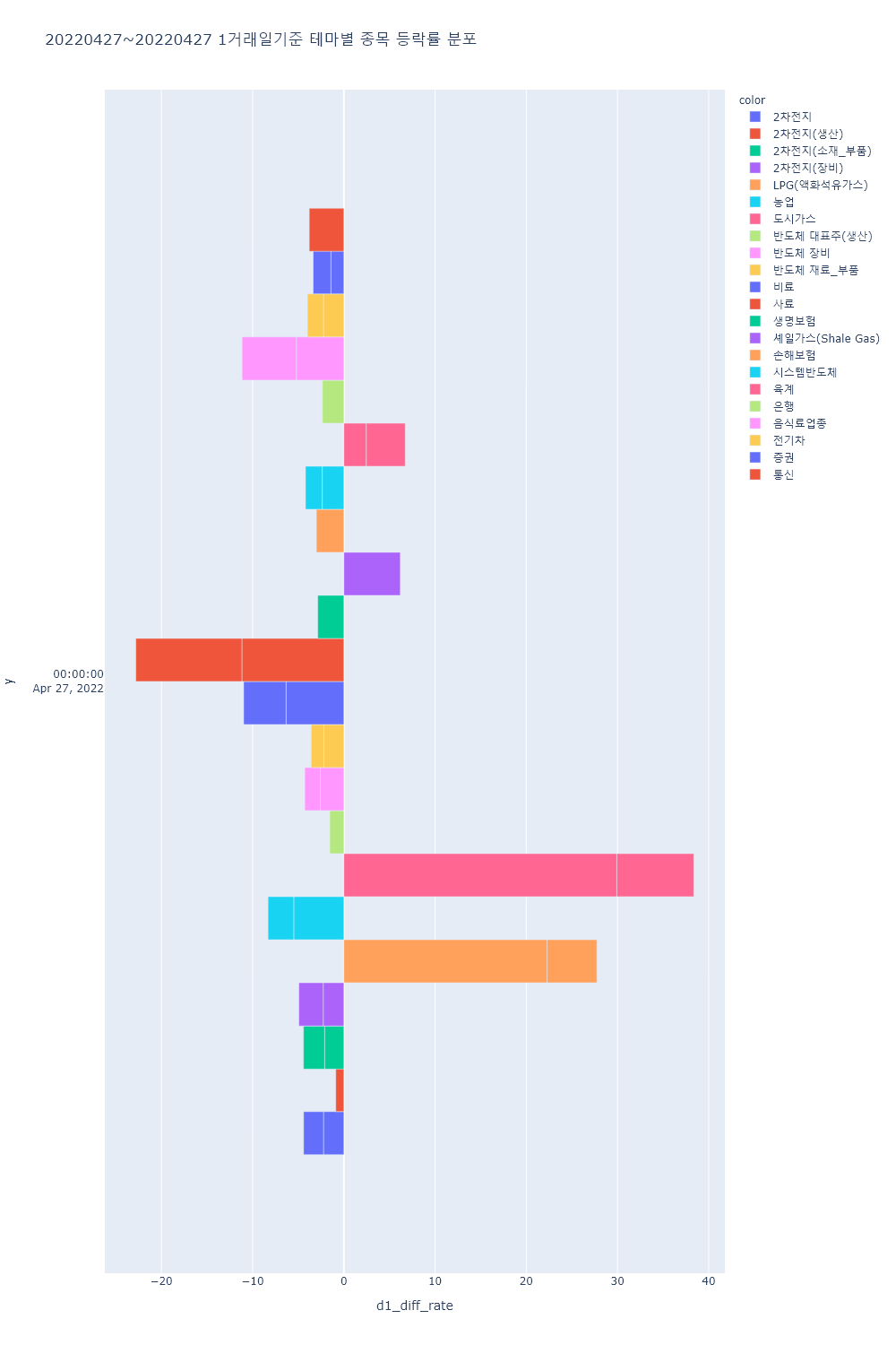 ▷이 외에 LED장비, 수산, 야놀자 관련주, 제지, 웹툰, 콜드체인(저온 유통), 게임, 창투사, 화학섬유, 인터넷 대표주 등이 테마가 하락률 상위를 기록.